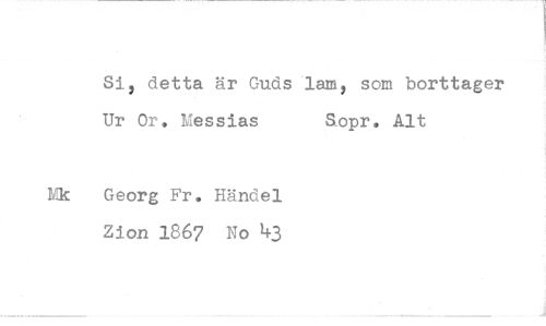 //// Si, detta är Guds lam, som borttager Ur Or. Messias Sopr. Alt //// Georg Fr. Händel Zion 1867 No 43