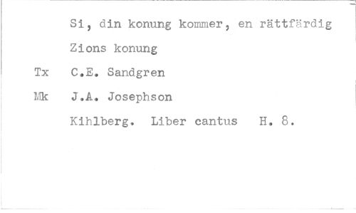 //// Si, din konung kommer, en rättfärdig Zions konung Tx C.E. Sandgren Mk J.A. Josephson //// Kihlberg. Liber cantus H. 8.