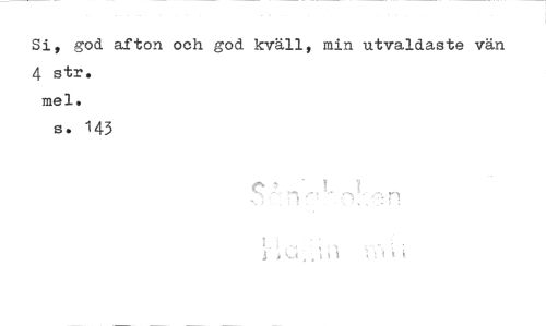 //// Si, god afton och god kväll, min utvaldaste vän //// 4 str. mel. //// s. 143