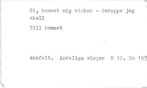 //// Si, hemmet mig vinkar - deruppe jag skall //// Till hemmet //// Ahnfelt. Andeliga sånger H 12. No