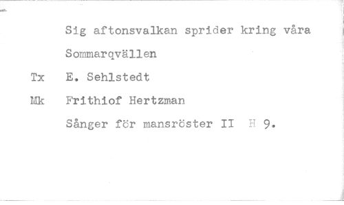 //// Sig aftonsvalkan sprider kring våra Sommarqvällen Tx E. Sehlstedt Mk Frithiof Hertzman //// Sånger för mansröster II H 9.