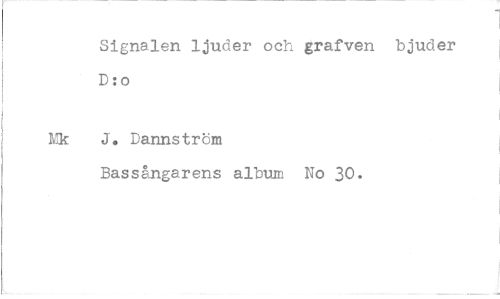 //// Signalen ljuder och grafven bjuder //// D:o //// J. Dannström Bassångarens album //// No 30.