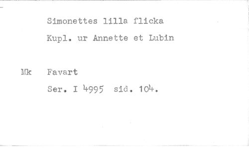 //// Simonettes lilla flicka Kupl. ur Annette et Lubin //// Favart //// Ser. I 4995 sid. 104.