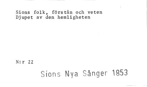 //// Sions folk, förstån och veten Djupet av den hemligheten //// N:r 22 //// Sions Nya Sånger 1853
