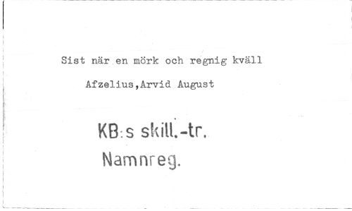 //// Sist när en mörk och regnig kväll Afzelius,Arviå August //// KB s shiH.-tr. Namnreg.