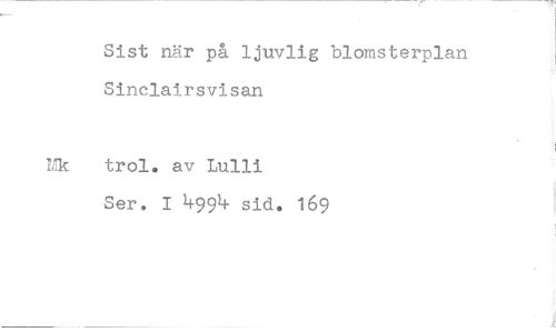 //// Sist när på ljuvlig blomsterplan Sinclairsvisan //// trol. av Lulli Ser. I 4994 sid. 169