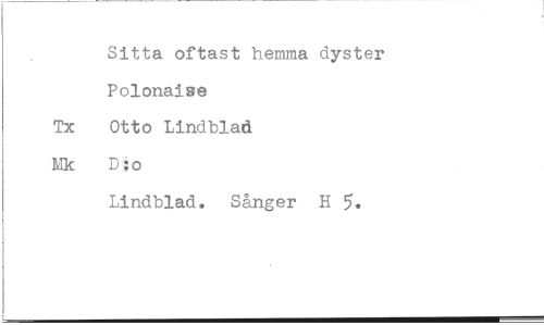 //// Sitta oftast hemma dyster Polonaise Tx Otto Lindblad Mk D: o //// Lindblad. Sånger H 5.