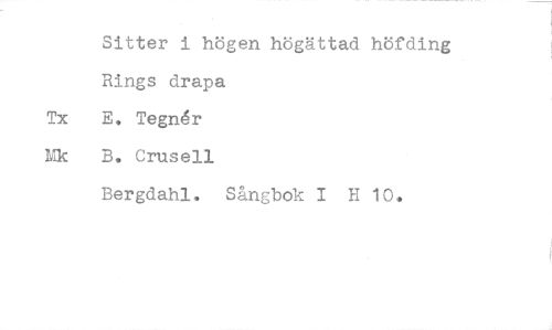 //// Sitter i högen högättad höfding Rings drapa E. Tegnér B. Crusell //// Bergdahl. Sångbok I H 10,