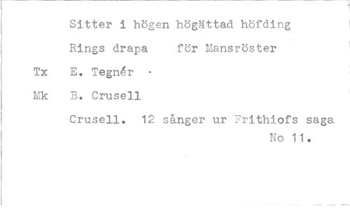 //// Sitter i högen högättad höfding //// Rings drapa för Mansröster //// Tx E. Tegnér - //// Mk B. Crusell //// Crusell. 12 sånger ur Frithiofs saga //// No 11.