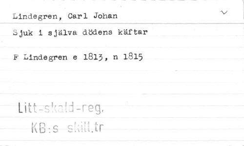 //// Lindegren, Carl Johan Sjuk i själva dödens käftar //// F Lindegren e 1813, n 1815