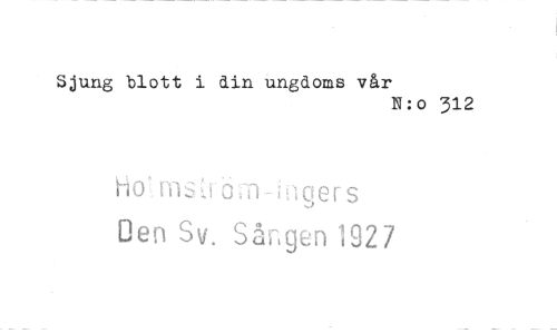 //// Sjung blott i din ungdoms vår //// N:o 312 //// ho rnsu orn -ingers Oen Sv. Sången 1927
