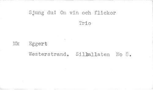 //// Sjung du! Om vin och flickor //// Trio //// Eggert //// Westerstrand. SiHallaten