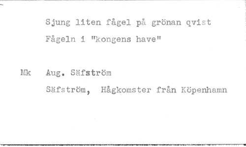 //// Sjung liten fågel på grönan qvlst Fågeln i "kongens have" //// Aug. Säfatröm //// Säfström, Hågkomster från Köpenhamn