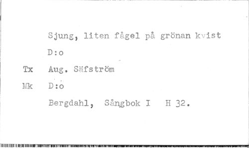 //// Sjung, liten fågel på grönan kvist D: o //// Tx Aug. Säfström Mk D:o //// Bergdahl, Sångbok I H 32.
