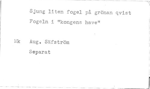 //// Sjung liten fogel på grönan qvist Fogeln i "kongens have" //// Aug. Säfström Separat