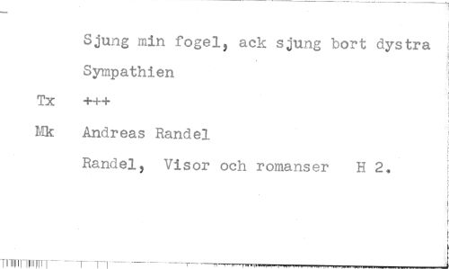 //// Tx //// Mk //// HWTWi* //// Sjung min fogel, ack sjung bort dystra ^ //// Sympathien j //// +++ i //// Andreas Randel ! //// Randel, Visor och romanser H 2. } //// f //// E