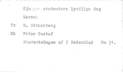 //// Sjun^om studenters lyckliga dag Marsch Tx H. Sätherberg Mk Prins Gustaf //// Studentsången af I Hedenblad No 31 *
