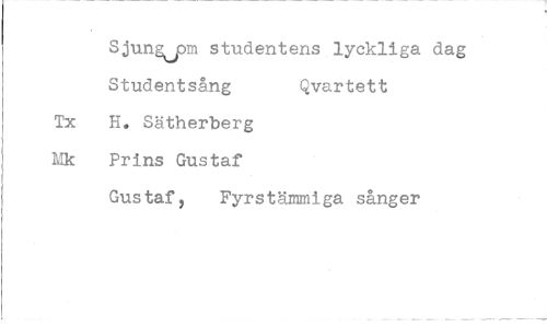 //// S jungjom studentens lyckliga dag Studentsång Qvartett //// Tx H. Sätherberg Mk Prins Gustaf //// Gustaf, Fyrstämmiga sånger