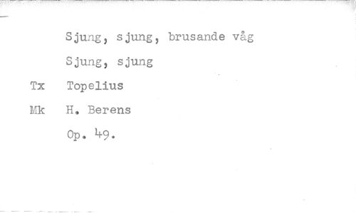 //// Sjung, sjung, brusande våg Sjung, sjung Tx Topelius Mk H. Berens Op. 49.