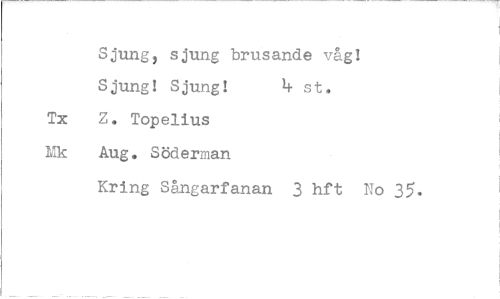 //// Sjung, sjung brusande våg! Sjung! Sjung! 4 st. //// Z. Topelius Aug. Söderman //// Kring Sångarfanan 3 hft No