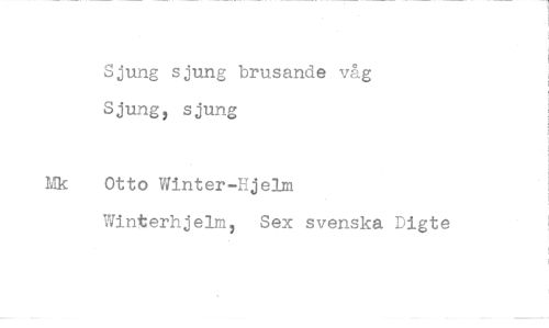 //// Sjung sjung brusande våg Sjung, sjung //// Otto Winter-Hjelm Winterhjelm, Sex svenska Digte