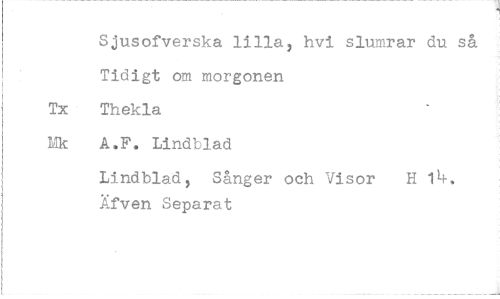 //// Sjusofverska lilla, hvi slumrar du så //// Tidigt om morgonen //// Tx Thekla //// Mk A.F. Lindblad //// Lindblad, Sånger och Visor H 14. Afven Separat