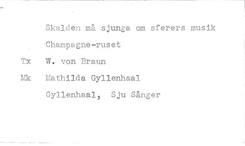 //// Skalden må sjunga om sferers musik Champagne-ruset Tx W. von Braun Mk Mathilda Gyllenhaal //// Gyllenhaal, Sju Sånger