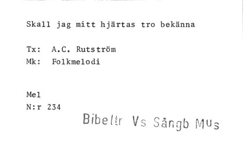 //// Skall jag mitt hjärtas tro bekänna //// Tx: A.C. Rutström Mk: Folkmelodi //// Mel //// N:r 234 //// Bibefir Vs Sångb M"s