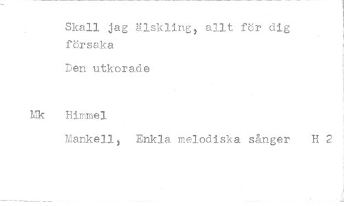 //// Skall jag älskling, allt för dig försaka //// Den utkorade //// Mk Himmel //// Mankell, Enkla melodiska sånger