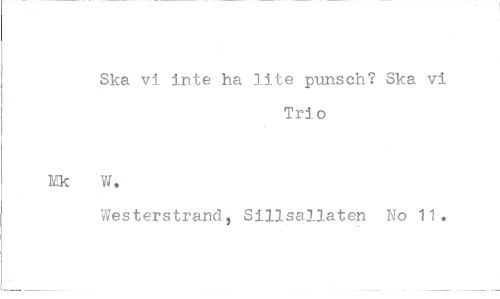 //// Ska vi inte ha lite punsch? Ska vi //// Trio //// Mk v;. //// Westerstrand, Sillsallaten No 11.