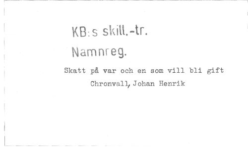 //// KB:S sMt.-tr. Mamnreg. //// Skatt på var och en som vill bli gift Chronvall, Johan Henrik