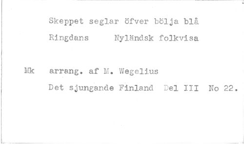 //// Skeppet seglar öfver bölja blå Ringdans Nyländsk folkvisa //// Mk arrang. af M. Wegelius //// Det sjungande Finland Del 111 No 22.