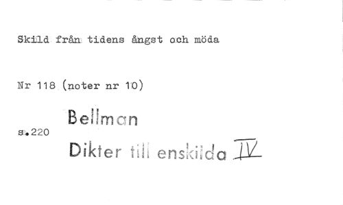 //// Skild från tidens ångst och möda //// Nr 118 (noter nr 10) //// Bei!mon //// s.220 //// Dikter iih enskiida