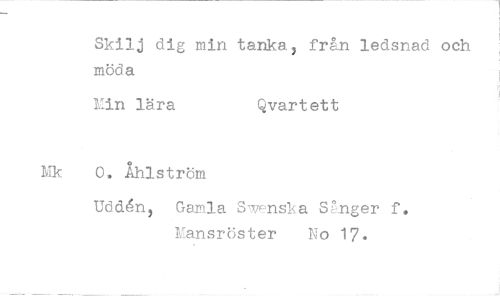 //// Skilj dig min tanka, från ledsnad och möda //// Min lära Qvartett //// 0, Ahlström //// Uddén, Gamla Swenska Sånger f. Mansröster No 17*