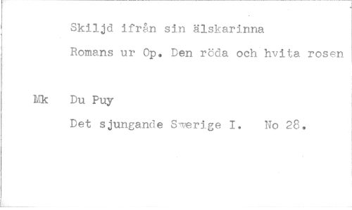 //// Skiljd ifrån sin älskarinna Romans ur Op. Den röda och hvita //// Du Puy //// Det sjungande Sverige I. No 28.