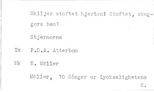 //// Skiljer stoftet hjertanP Stoftet, skuggors hem? //// Stjernorna //// P.D.A. Atterbom //// N. Möller //// Möller, 10 Sånger ur Lycksalighetens