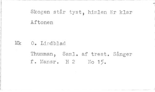 //// Skogen står tyst, himlen är klar //// Aftonen //// 0. Lindblad //// Thunman, Sami. af trest. Sånger f. Mansr. H 2 No 15.