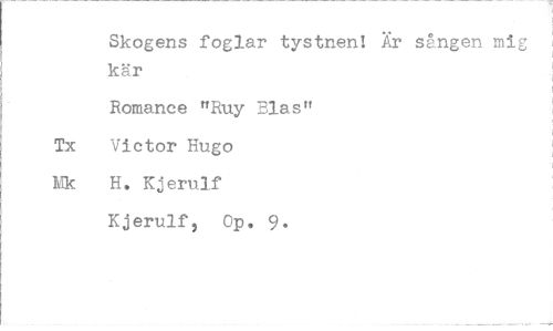 //// Skogens foglar tystnen! Är s&ngen mig kär //// Romance "Ruy Bias" //// Tx Victor Hugo Mk H. Kjerulf //// Kjerulf, Op. 9.