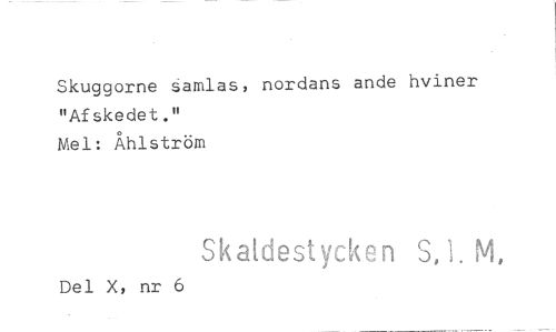 //// Skuggorne samlas, nordans ande hviner "Afskedet." //// Mel: Åhlström //// Skatdestycken S,!. M, //// Del X, nr 6