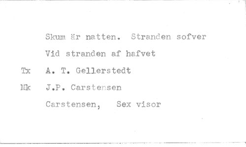 //// Skum är natten* Stranden sofver Vid stranden af hafvet Tx A. T. Gellerstedt Mk J.P. Carstensen //// Carstensen, Sex visor