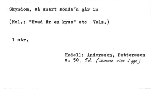 //// Skyndom, så snart s8nda'n går in (Mel.: "Hvad är en kyss" ete Vals.) //// 1 str. //// Hodell: Andersson, Pettersson
