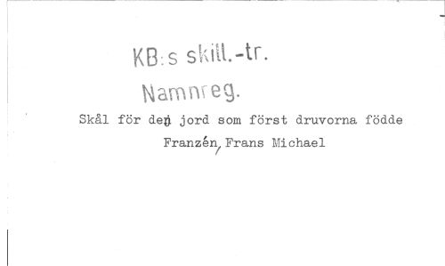 //// KB.s sML-tr. Mamnreg. //// Skål för de^ jord som först druvorna födde Franzén,Frans Michael