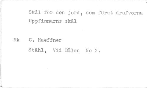 //// Skål for den jord, som förut drufvorna Uppfinnarns skål //// C. Haeffner //// Ståhl, Vid Bålen No 2.