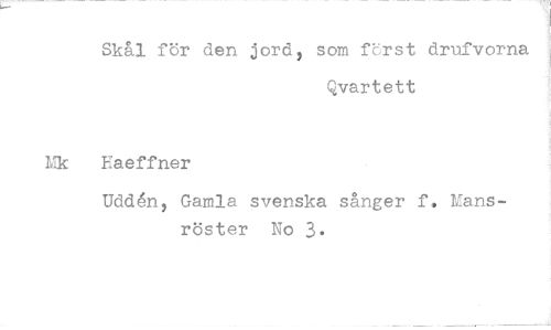 //// Skål för den jord, som forst drufvorna //// Qvartett //// Kaeffner //// Uddén, Gamla svenska sånger f. Mansröster No 3*