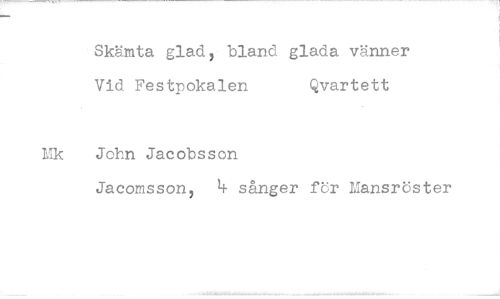 //// Skämta glad, bland glada vänner Vid Festpokalen Qvartett //// John Jacobsson //// Jacomsson, 4 sånger för Mansröster