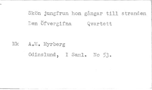 //// Skön jungfrun hon gångar till stranden Den Öfvergifna Qvartett //// A.M, Myrberg //// Odins lund, I Sami. No