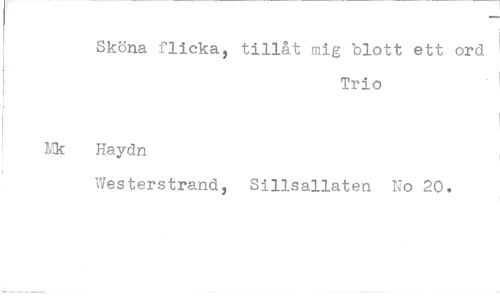 //// Sköna flicka //// Haydn //// Westerstrand //// tillåt mig blott ett ord Trio //// Sillsallaten No 20.