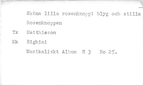 //// Sköna lilla rosenknopp! blyg och stilla //// Rosenknoppen //// Matthieson //// Righini //// Musikaliskt Album H 3 No 25.