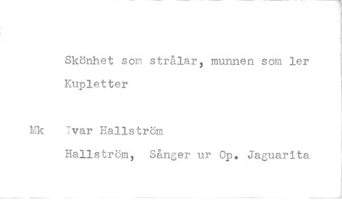 //// Skönhet som strålar, munnen som ler Kupletter //// Ivar Hallström //// Hallström, Sånger ur Op. Jaguarita