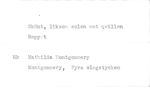 //// Skönt, liksom solen mot qvällen Hopprt //// Mathilda Montgommery Montgommery^ Fyra sångstycken